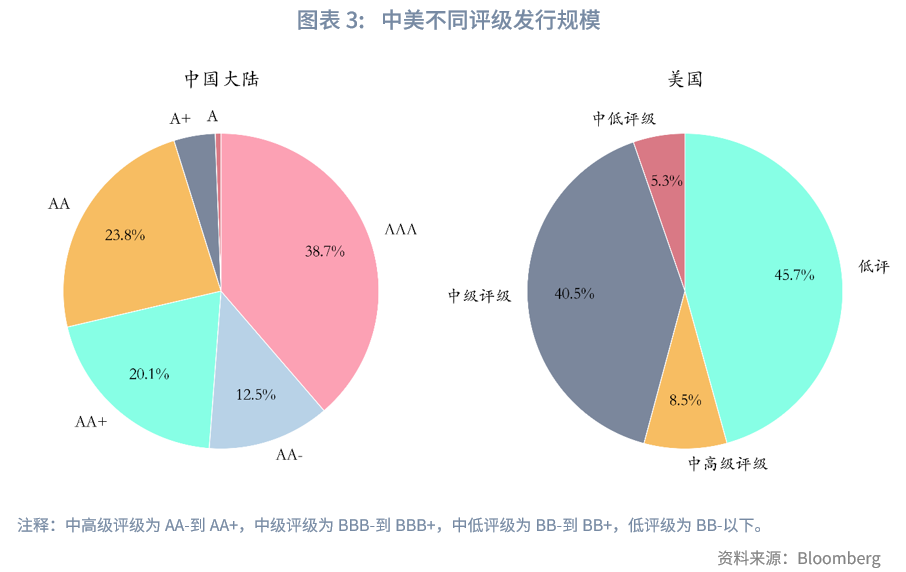 中国可转债市场在发行上与国际市场存在显著差异。统计2017年至今的转债发行情况,发行评级方面,中国市场以民营企业为主,债项评级多在AA级及以上,占比82.6%,与之相比,美国可转债多数是没有评级的,对于有评级的部分,AA-级及以上的仅占8.5%。