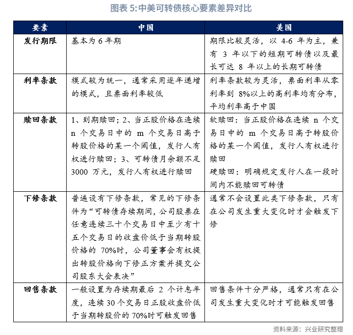 中国与以美国可转债市场在基础层面存在系统性差异。一是发展过程。美国可转债市场始于1843年,已进入高度成熟稳定阶段,而中国自1992年起步,2017年后才进入快速发展期,目前虽已成为全球第二大市场,但制度仍在完善之中。二是市场情况。中国市场发行可转债主要是为了最终转股,投资者以做多策略为主,美国市场发行可转债主要是为了更低的票息和延迟稀释股权,投资者以对冲策略为主。三是条款差异。中国可转债普遍设有向下修正转股价条款,不同转债的条款较为一致,而国际市场下修条款非常少,并且存在很多个性化的灵活条款。